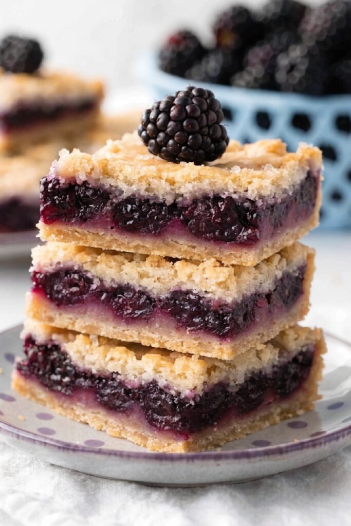 They work nicely as a dessert after meals or as a sweet bite with tea or coffee. The blackberry layer adds a fresh touch that keeps each piece from feeling overly rich.