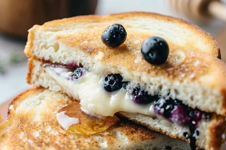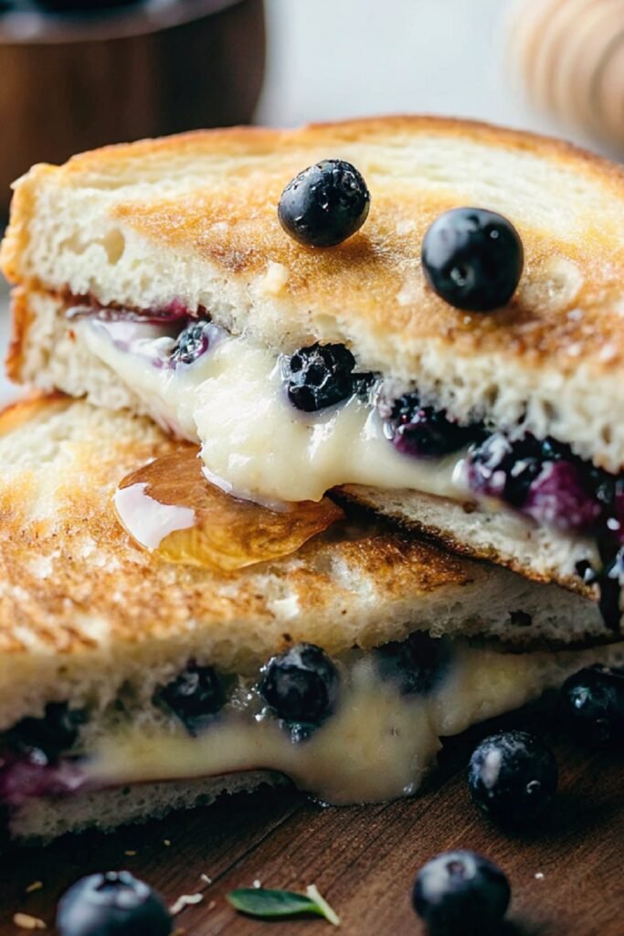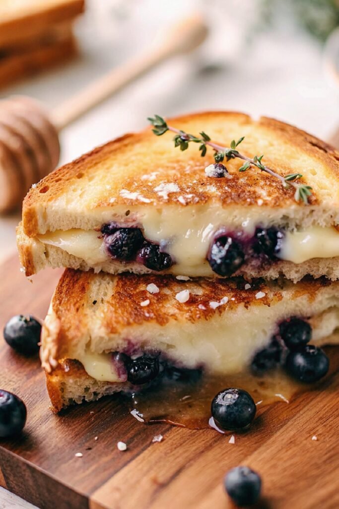 For a slightly sweeter presentation, add a few extra fresh blueberries on the plate along with a drizzle of honey across the sandwich. The bright berries and golden bread create a beautiful plate that looks just as good as it tastes.