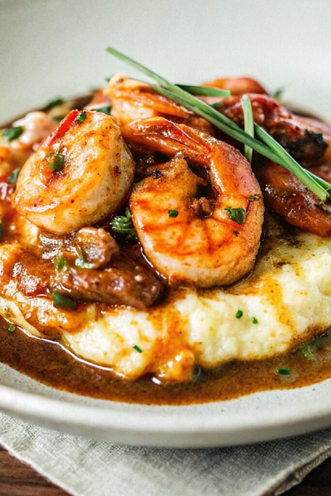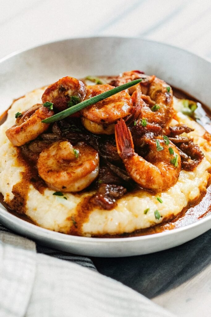 For a fuller meal, pair the dish with a light side salad or roasted vegetables. The fresh sides balance the richness of the grits and shrimp.