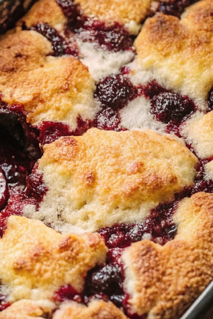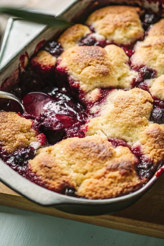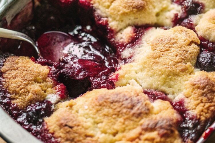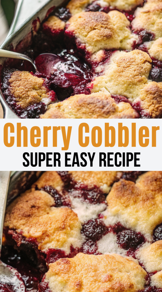 Cherry cobbler tastes best warm, straight from the dish once it settles slightly. The topping stays soft while the cherries remain juicy underneath.