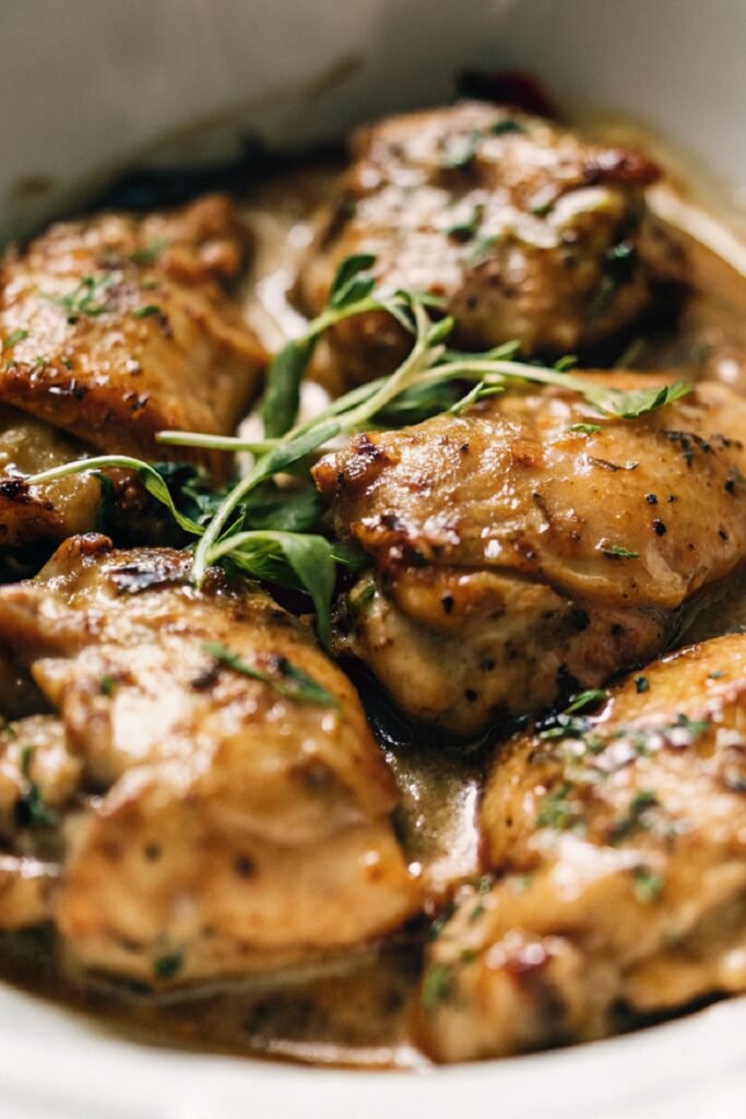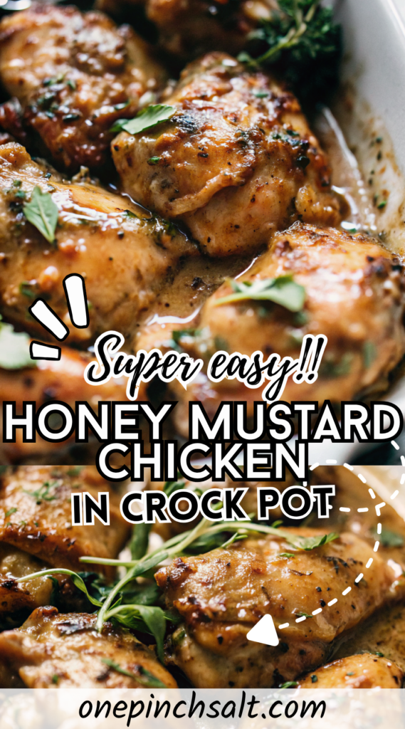 Half tender slow-cooked chicken and half sweet-tangy honey mustard sauce, this crock pot honey mustard chicken is juicy, full of rich flavor, and simply irresistible.