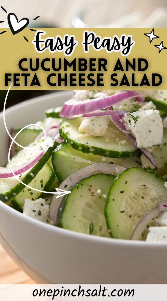Break the feta cheese into small chunks or crumbles. Scatter it evenly over the cucumbers and onions so each serving gets a balanced amount.