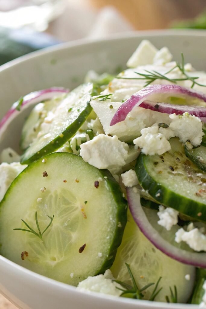Let the salad sit in the fridge for about 10 minutes before serving. This short rest helps the flavors blend while keeping the cucumbers crisp.