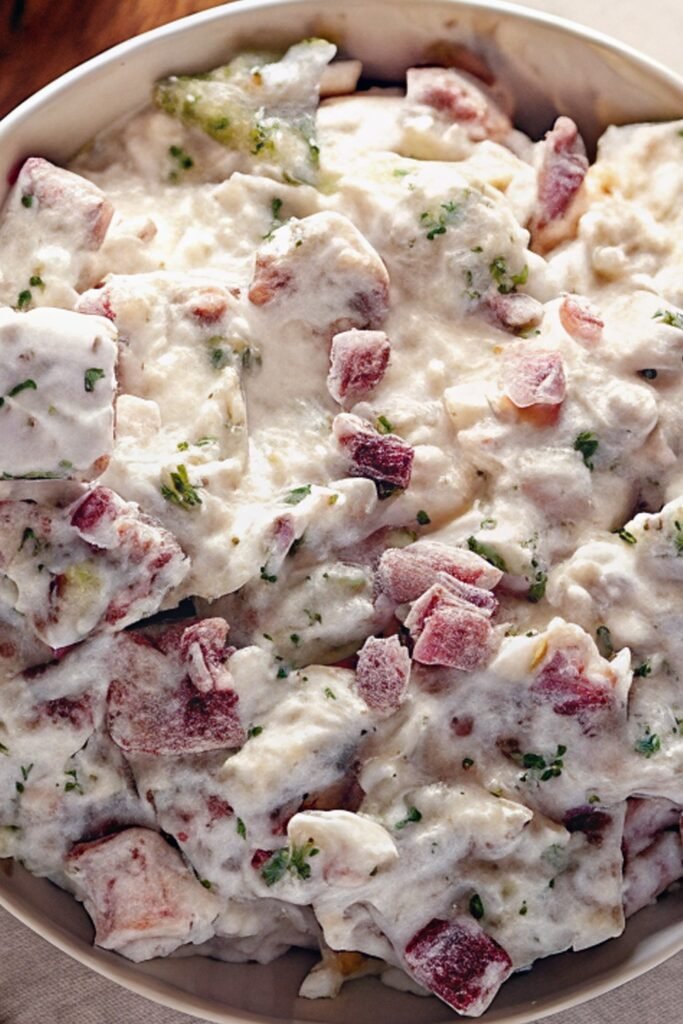Add the finely chopped ham and mix again. Make sure it distributes evenly so each scoop gets a bit of that savory flavor. - Add garlic and dill:
