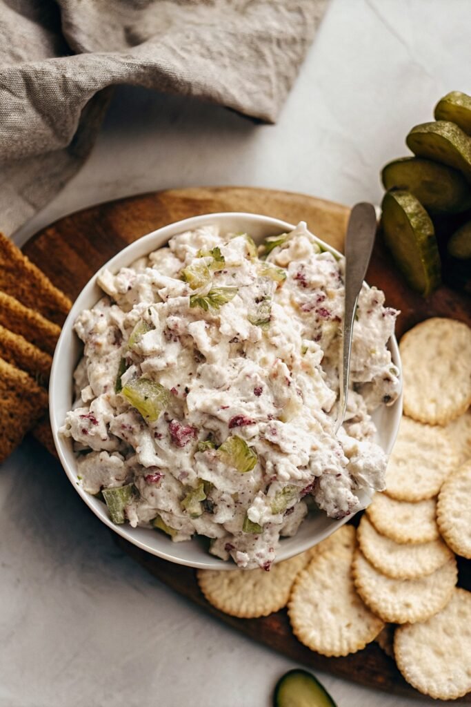 A bowl of this dip with crackers or toasted bread feels like the easiest way to enjoy it. The crunch pairs well with the creamy texture and makes each bite satisfying.