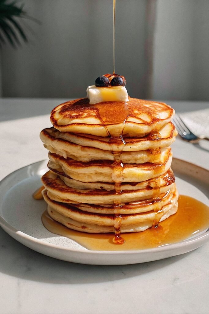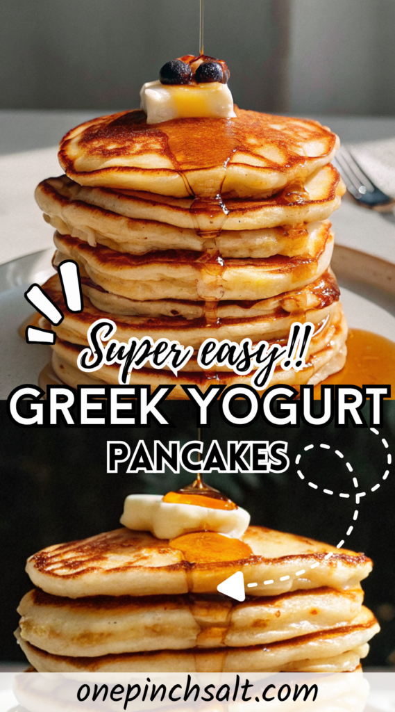A stack of these pancakes tastes great with a drizzle of honey or maple syrup. The slight tang from the yogurt pairs well with sweet toppings and creates a balanced bite.