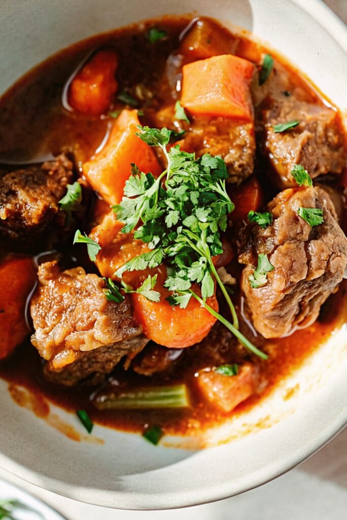 This stew feels perfect with something simple on the side. Crusty bread works beautifully to soak up the rich broth. Mashed potatoes also pair well and make the meal extra comforting.
