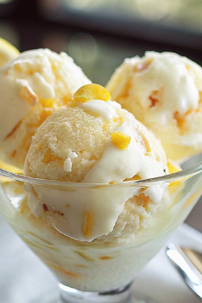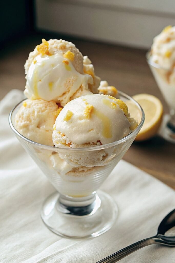 Right out of the freezer, scoop the ice cream into bowls or cones and enjoy it as it is. The creamy texture and lemon flavor already feel complete on their own.