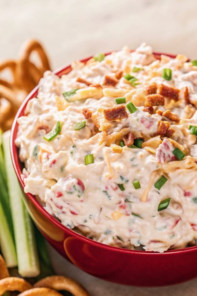 For parties, transfer the dip to a serving bowl and top with extra green onions or bacon for a finished look. It works well as a game day snack, holiday appetizer, or casual get together dip.