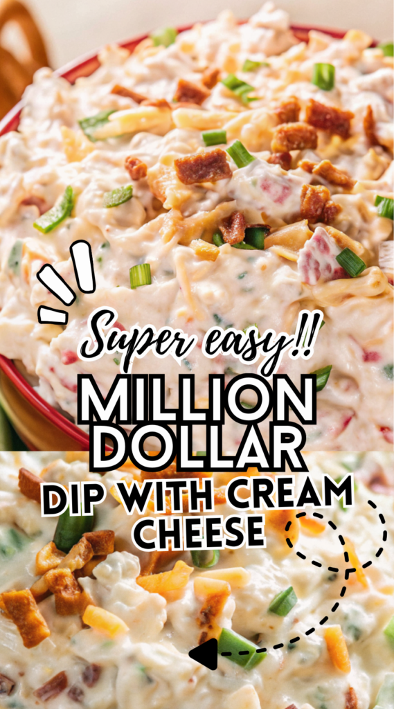 This easy savory dip with a rich cream cheese base is full of crunch, plenty of bold flavor, and adds so much delicious variety to any table. Scoop it up with pretzels or chips, or serve it alongside any snack spread. Million Dollar Dip is the perfect easy no-cook appetizer for holidays, barbecues, and potlucks!