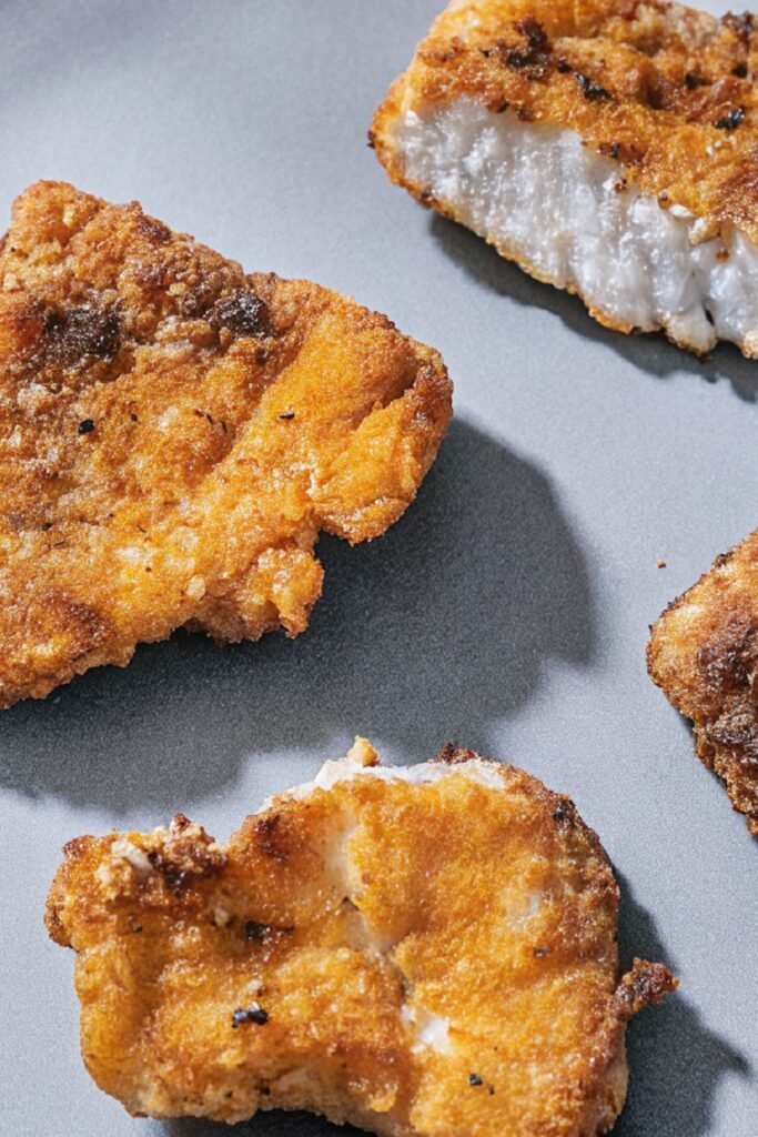 A plate of this fish pairs well with simple sides like fries or roasted potatoes. The crispy coating works nicely with soft sides.