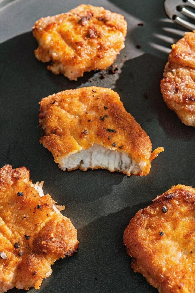 Place flour in one dish, beaten eggs mixed with milk in another, and breadcrumbs mixed with paprika and garlic powder in a third. This setup keeps the coating process clean and easy.
