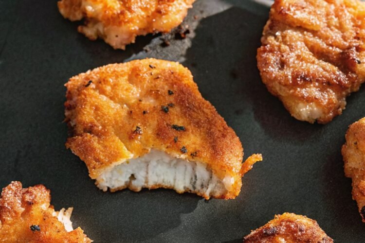 Dip each fillet into the flour first, then into the egg mixture, and finally into the seasoned breadcrumbs. Press gently so the crumbs stick well and form an even layer.
