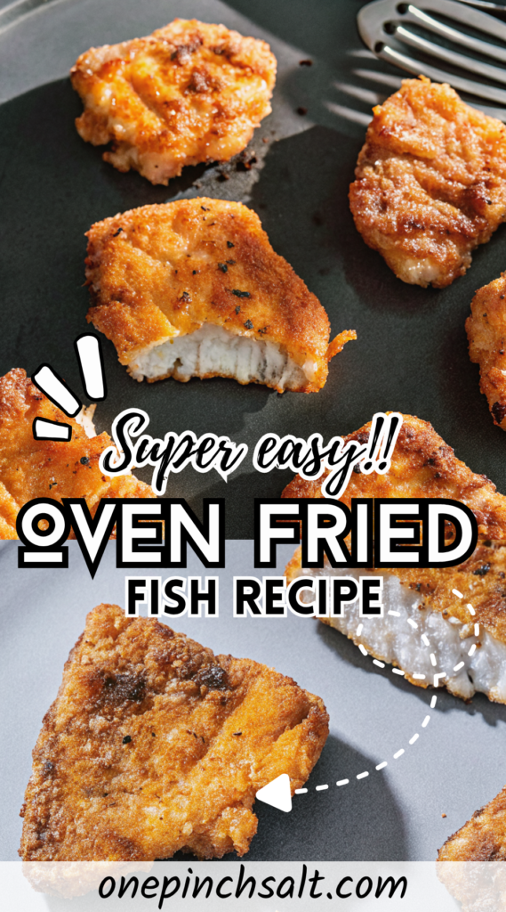 These oven-fried fish fillets are crispy and golden, just like your favorite restaurant fried fish! They require no hot oil, and are easier to make at home than you might think.