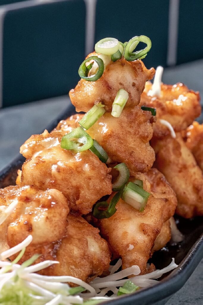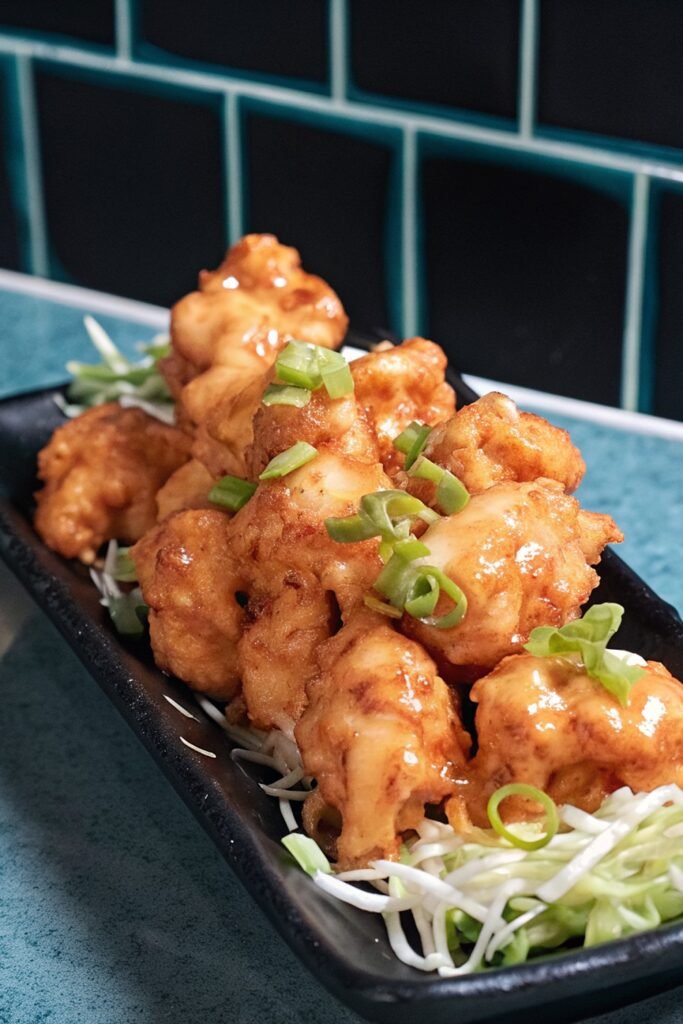 - Plate the dish right after tossing with the sauce to enjoy the contrast of the warm, crunchy coating against the creamy, spicy dressing.