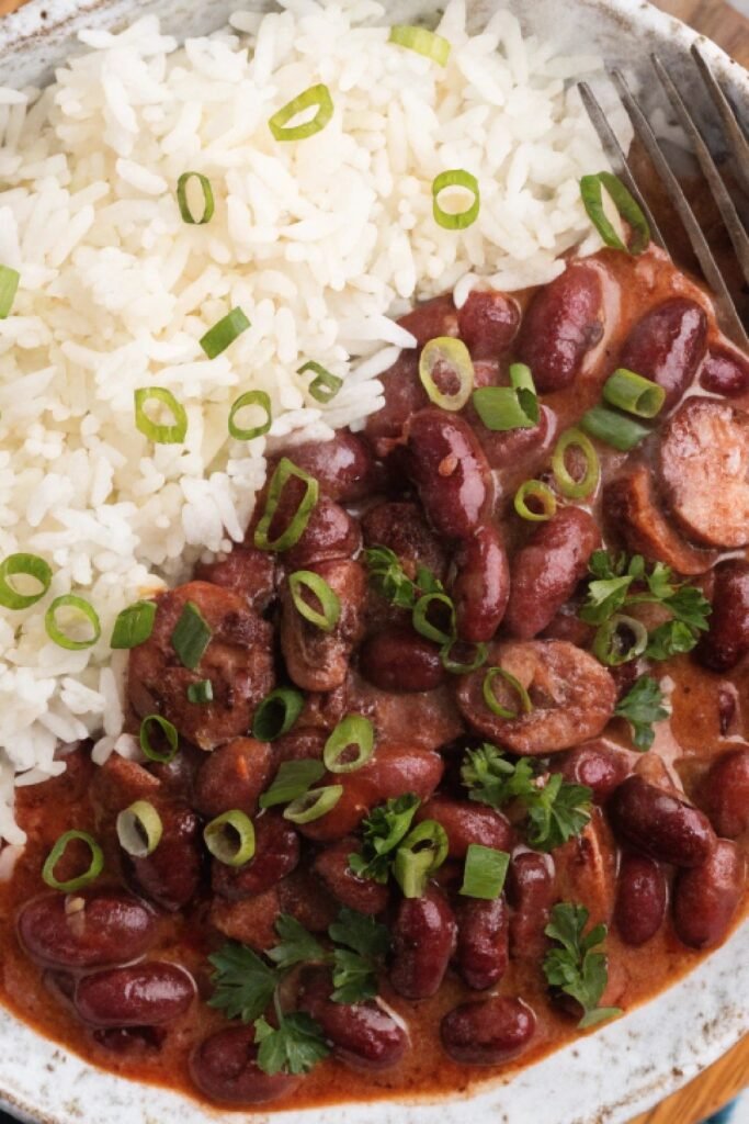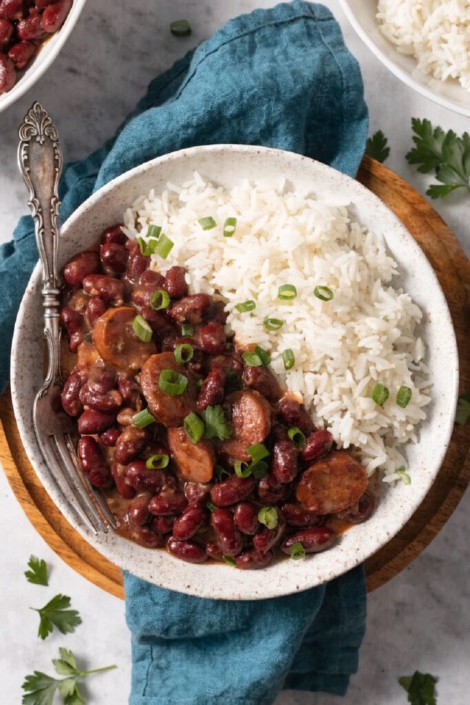 Creamy and smoky, this flavorful Popeyes red beans and rice copycat requires just a handful of pantry staples! It’s easy enough for a weeknight dinner, but comforting enough to feed a hungry crowd too.