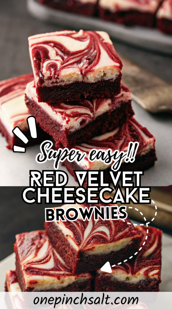 Only a few minutes of prep work, a quick bake in the oven, and voila, you’ve got deep red brownie layers underneath creamy white cheesecake swirls. Top these red velvet cheesecake brownies with a dusting of powdered sugar for a classic dessert to savor for any occasion!
