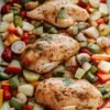 Place chicken in a large bowl. Add olive oil, garlic, coriander, paprika, oregano, thyme, salt, pepper, and lemon juice. Toss until evenly coated. - Arrange on tray: