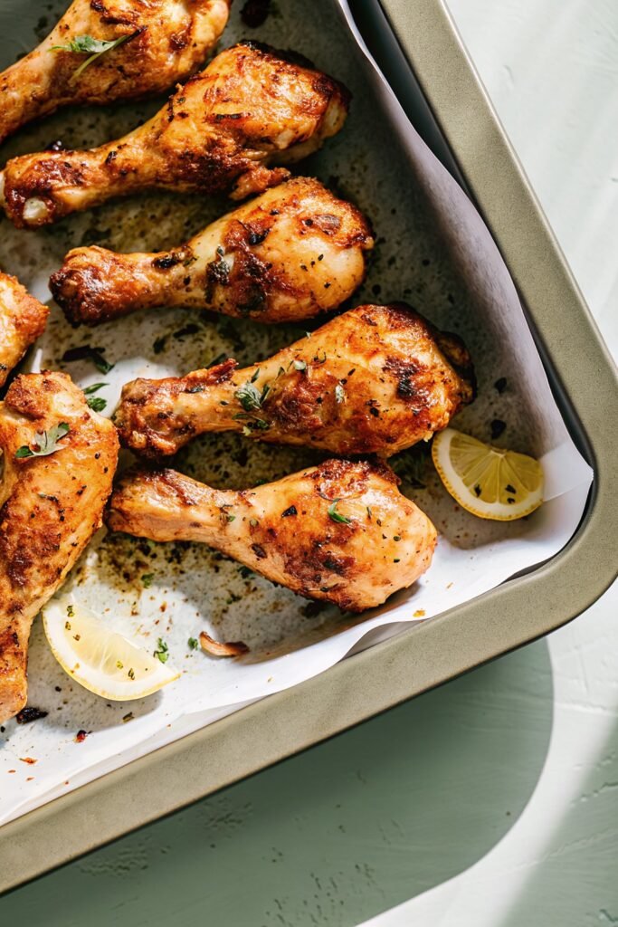 Pat the chicken legs dry with paper towels. Dry skin helps with browning and texture.