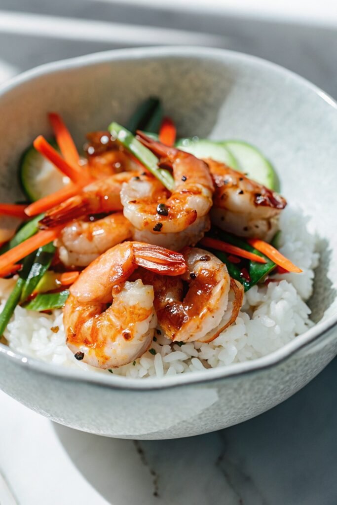 One easy way to enjoy this bowl is straight after cooking while everything feels warm and fresh. The shrimp stays juicy and the rice soaks up the sauce nicely, making every bite flavorful without needing extra toppings.