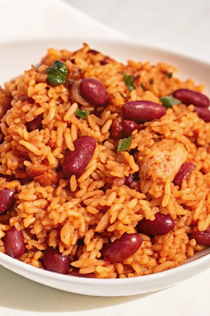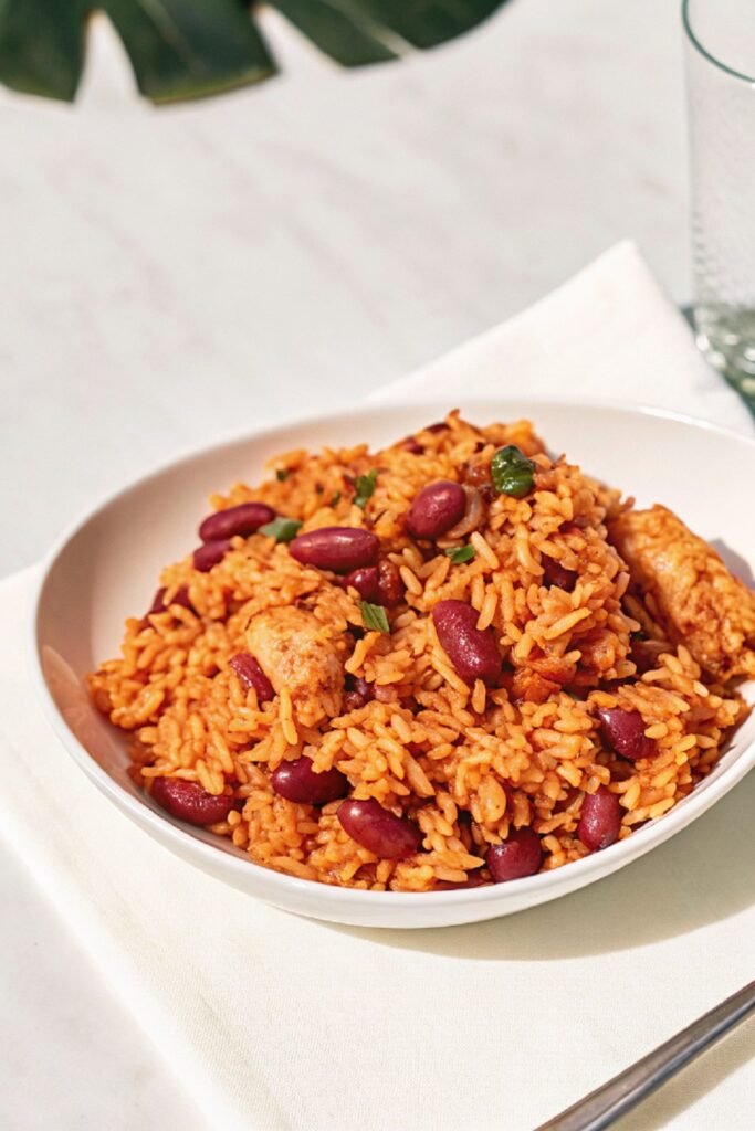 This dish tastes best served warm straight from the pan. The mix of rice, beans, and chicken already feels complete, so it works well on its own.