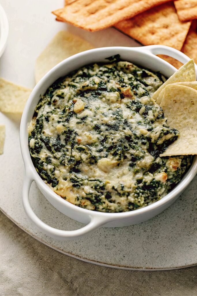 The perfect combination of rich and creamy cheese, tender spinach, and soft artichokes make up this irresistible spinach artichoke dip.