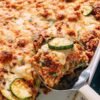 Spoon the mixture into a greased baking dish and spread it evenly. Sprinkle the remaining mozzarella over the top for a bubbly crust