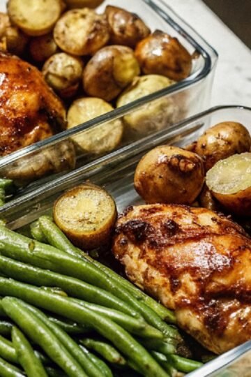 Glazed Chicken Thighs with Roasted Potatoes and Green Beans (Meal Prep)